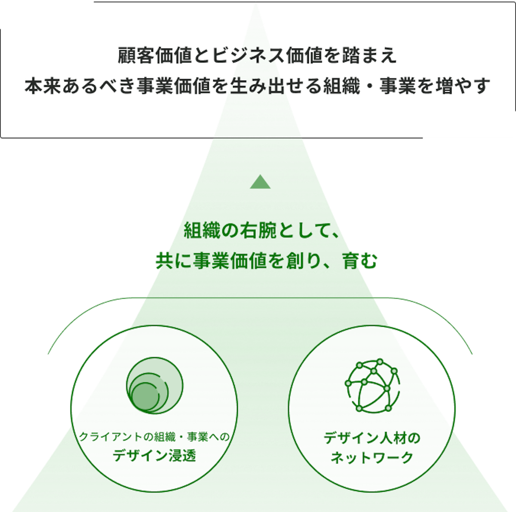 私たちは事業の成長によりそい、デザインを実践しようとする人々を支え、